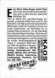 Entwicklung von Modellen gemeinnütziger Medienproduktion für das Land NRW · 1989-1990